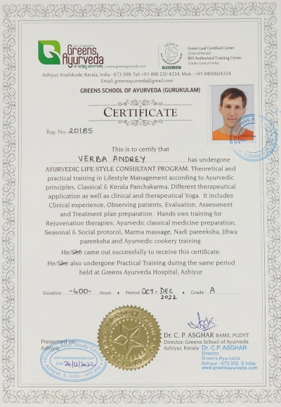 Дипломированный преподаватель йоги, медитации и аюрведы. Более 30 лет преподаёт йогу и другие системы познания себя.