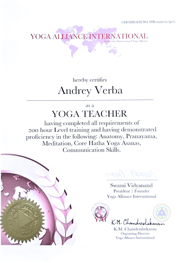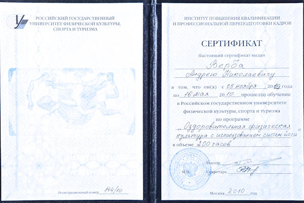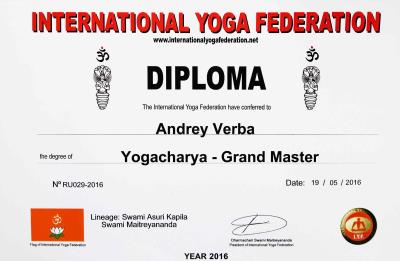 Аттестация в International Yoga Federation уровня: Yogacharya – Grand Master.