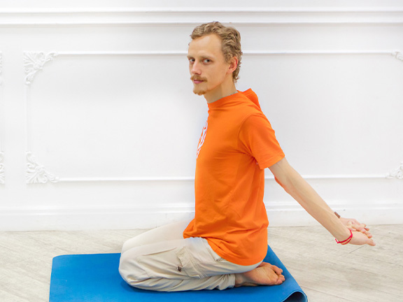 - C ещё прикрытыми глазами присесть в доступную медитативную асану, несколько дыхательных циклов побыть с закрытыми глазами и завершить практику.