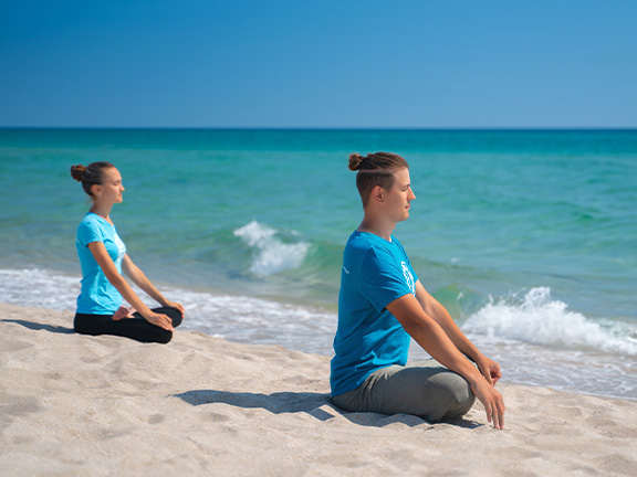 - Займите положение с прямой спиной и скрещёнными ногами на полу.