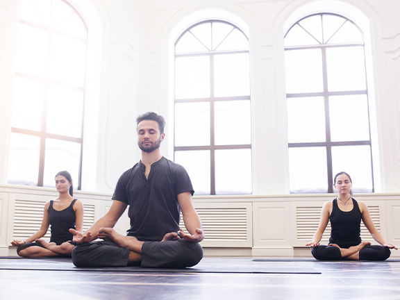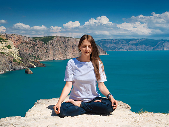 - Сядьте в удобную позу со скрещёнными ногами и прямой спиной.