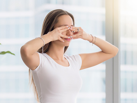- Завершая вдох, сомкните губы, медленно выдохните через нос.